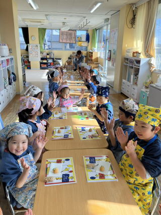 あっちでもこっちでもニコニコしながら、「みんなで食べると美味しいね」と言っていました。