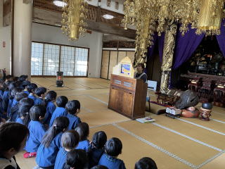 時々横道にそれる園長先生の話をみんな楽しそうに聞いていました♪